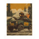 Embrace the spirit of conservation with this ruggedly handsome wood art print featuring Smokey the Bear, America's beloved symbol of wildfire prevention. Illustrated with vivid detail, Smokey is portrayed in action, manning a hose from his trusty green Jeep against a backdrop of towering pines and a fiery horizon. The message is clear and bold: "Prevent Forest Fires - If Not You, Who?"