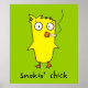 This is one smokin’ chick! Cute yellow cartoon chick smoking a cigarette. Original cartoon art by Taylor Addams.