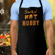 BBQ grill or smoker apron for the SMOKIN' HOT HUBBY (or your nickname for your husband or partner). The design features fire and flames and editable black background. ASSISTANCE: For help with design modification or personalization, color change or transferring the design to another product, contact the designer BEFORE ORDERING via the Zazzle Chat MESSAGE tab below or email makeitaboutyoustore@gmail.com.