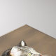 A smoky gray tabby cat perched on the edge of a chair against a neutral background. Customise by adding your own text. You may change both the font and text colour.