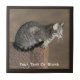 A smoky gray tabby cat perched on the edge of a chair against a neutral background. Customise by adding your own text. You may change both the font and text colour.