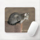 A smoky gray tabby cat perched on the edge of a chair against a neutral background. Customise by adding your own text. You may change both the font and text colour.