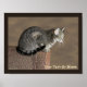 A smoky gray tabby cat perched on the edge of a chair against a neutral background. Customise by adding your own text. You may change both the font and text colour.