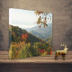 Autumn foliage shows it brilliant colors along the mountain peaks in the Smoky Mountains. The bright hues of orange and yellow in this print were captured on a day when the Blue Smoke was visable.