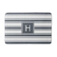 Add a touch of bespoke style to your bathroom with our monogrammed bath mat in a classic color palette of muted, smoky navy blue and gray. Design features wide horizontal stripes in a chic combo of wide and narrow, with your single initial monogram at the center. If not monogramming, delete the sample initial and click "clear" to remove the square element.