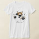 My overall review is that the T-shirt is nice, it fits true to size however the font is significantly smaller than advertised and you can't read it. The printing is unreadable and there is a strain to read it. It does not look like the advertised product. Maybe the shirt color is darker or a larger more visible font should have been used. Photos with and without flash and font is barely legible.