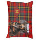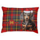 A festive plaid pattern in green and red hues with the dog's monogram and a dressed up smooth-coated Dachshund for a great monogrammed pet bed that is dog breed specific and perfect for the holiday season.
