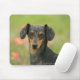 Smooth-haired Miniature Dachshund Puppy Looking at Mouse Pad