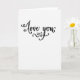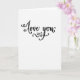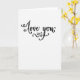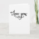 This card shows the words “Love you” in flowing black calligraphy centered on a pure white background. The “L” is large and curling, with smooth loops that make the lettering feel like it was written in one confident motion. The rest of the words are slightly smaller, with gentle up-and-down strokes that connect the letters and keep your eyes moving across the phrase. There aren’t any characters or extra objects, just plenty of open white space around the text that makes the message feel calm and focused. The strong black-on-white contrast keeps it easy to read and gives the note a sincere, direct feel. It’s a meaningful card to give because it says exactly what you want to say without adding anything distracting, which can feel especially honest 🥰. Whether it’s for a partner or someone close, it comes across as simple affection and steady care ❤️. Hope it helps you share your Valentine’s Day feelings in a sweet, genuine way.
