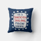 Bold text reading "Smooth Sailing From Here" is centered against a navy blue background. The red and blue text sits on a white rectangle with large textured white dots around it, providing a playful contrast against the solid color backdrop.