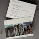 A modern save the date postcard designed to accommodate three engagement photos aligned side by side. "Save the date" appears beneath in gold foil block and script lettering, with your names, wedding date and wedding location beneath. Postcards reverse to show additional save the date details, including your wedding website, with your return address and space for recipient addressing.