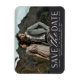 A modern save the date magnet designed to accommodate your favorite horizontal or landscape oriented full-bleed engagement photo. "Save the date" appears beneath your photo in white block and script lettering, along with your names, wedding date and wedding location. Use the additional line of text to share your wedding website or additional details.