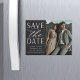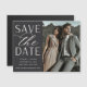 A modern save the date magnet designed to accommodate your favorite vertical or portrait oriented engagement photo. "Save the date" appears alongside your photo in chic block and script lettering, with your names, wedding date and wedding location beneath.