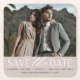 A modern save the date in a unique coaster format, designed to accommodate your favorite horizontal or landscape oriented full-bleed engagement photo. "Save the date" appears beneath your photo in chic block and script lettering, along with your names, wedding date and wedding location. Use the additional line of text to share your wedding website or additional details.