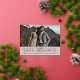 A modern save the date postcard designed to accommodate your favorite horizontal or landscape oriented full-bleed engagement photo. "Save the date" appears beneath your photo in rose gold foil block and script lettering, with your names, wedding date and wedding location beneath. Postcards reverse to show additional save the date details, including your wedding website, with your return address and space for recipient addressing.