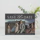A modern save the date card designed to accommodate three vertical engagement photos aligned in a side by side layout. "Save the date" appears beneath in chic block and script lettering, along with your names, wedding date and wedding location. Cards reverse to reveal additional save the date details.