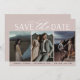 A modern save the date card designed to accommodate three vertical engagement photos aligned in a side by side layout. "Save the date" appears beneath in chic block and script lettering, along with your names, wedding date and wedding location. Cards reverse to reveal additional save the date details.