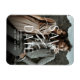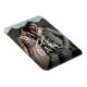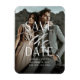 A modern save the date magnet designed to accommodate your favorite vertical or portrait oriented full-bleed engagement photo. "Save the date" is overlaid on the center of your photo in white block and script lettering, with your names, wedding date and wedding location beneath.