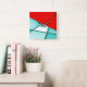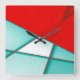 Smooth turcoise trapeze rectangle under red sheet square wall clock