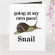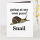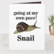 Snail Going At My Own Pace Funny Snail Card original design by Nisha Prabhu. Celebrate the beauty of taking your time with our whimsical 'Snail Going at My Own Pace' card. Whether you're sending a giggle to a friend, a heartfelt message to a loved one, or just need to remind someone that life isn't a sprint, this adorable snail is here to deliver a dose of humor and charm. Perfect for birthdays, encouragement, or just because—this card is a delightful reminder to embrace every moment at your own speed. So why rush? Grab this card, and let your snail-inspired spirit shine!