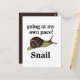 Snail Going At My Own Pace Funny Snail Postcard original design by Nisha Prabhu. Embrace your inner snail with this whimsical postcard, perfect for those who march to the beat of their own drum! Featuring a charming illustration of a cheerful snail, this delightful design embodies the mantra 'Going at My Own Pace.' Whether you're sending a note to a friend or keeping it on your desk as a reminder to take life slow, this postcard radiates positivity and humor. It’s just right for snail mail enthusiasts and anyone who appreciates the beauty of a leisurely journey. Share a smile, spread some joy, and remember – it's not the destination, but the delightful journey that counts!