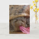 This is a closeup photo image of a snail eating pink paper. Unique snail photo blank greeting card for any occasion. You can customize your message, font and image for a personal snail message.