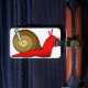A snail may travel slo but don’t let that fool you. They are a great creature. This design of a snail is done in a cartoon style. The snail is red and the shell has a chimney coming out of it. This snail design looks great on these luggage tags. Perfect for yourself or as a gift