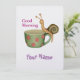 A snail has ascended to a cup of coffee, and with great calm, resting, it wishes us a good morning. The cup is in a green colour with red dots. Surely, when our intrepid snail gets back to floor, it will give wish us a good afternoon. You can customize the text to fit your needs.