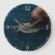Snail On Blue Closeup, Nature Animal Photograph Large Clock