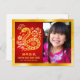 “Happy New Year” faux gold foil typography in both Chinese and English, a stunning visual of a graphic faux gold foil snake, flowers and clouds, your names, and the photo of your choice overlay a traditional Asian red circle pattern and brushed faux gold foil border on the front. On the back are a red cloud and star visual, your personal message and return address. Feel the warmth and joy of the holiday season whenever you send this stylish yet modern, personalized 2025 Chinese Lunar New Year of the Snake photo postcard. Make sure someone special receives this greeting!