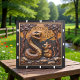 This dramatic square wall clock features a highly dimensional illustration of a coiled brown and tan snake with an open mouth and a small, orange-brown rat standing next to it. The entire design is rendered in rich brown, orange, and dark wood tones, strongly suggesting a deep carved relief or Engraved Wood Look. The snake has detailed scales, and the rat has textured fur and a long tail. They are positioned on a bed of rocks and boulders in the foreground. The background is a textured wood grain panel, framed by gnarled tree trunks and leaves. The carving style gives the entire image a strong three-dimensional, sculpted quality. The large, three-dimensional embossed text "BESTIES FOR LIFE" is carved across the top. The clock face features a simple clock face border with large, white, numbered tick marks (1 to 12) integrated into the outer frame. The artwork is surrounded by a thick, dark brown decorative border that resembles a black wood frame.