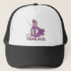 An illustration of a king cobra snake rock climbing. This funny snake is wearing a climbing helmet and harness. The text below reads Thailand as this design is inspired by the sport climbing at Tonsai, Karbi and Reilay beach. The pink snake is wearing a climbing harness and is belaying.