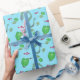 Snake Wrapping Paper with an animated print featuring snakes, frogs, fish and green leaves. The bright and dynamic design brings to life, with the animated characters seemingly coming alive. Snakes coil around frogs and fish. The color palette includes vibrant shades of green, blue, and red. These Snake Wrapping Paper are perfect for all Holidays.