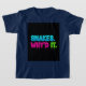This bold t-shirt design features the quote "Snakes. Why'd It." in a multi-color, graffiti-style font. The vibrant neon colors stand out dramatically against a dark background. It's a striking and humorous design perfect for anyone who appreciates a pop culture reference with a modern, artistic twist.