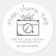 This modern and cool business sticker is perfect for any home business, boutique, Etsy crafter, or any other small business. It features the phrase, "Snap, Share, Tag," in simple and thin black typography with a cute camera illustration and a message to your customers to tag you in pictures of purchased products on social media and your handle so they can tag your business. The color scheme includes a simple black and white. It's a clever, cute, fun, and unique way to market your business online and involve your customers in the process which encourages interaction and connection. These stickers are perfect for your packaging, as product labels, or on any business-related materials.