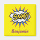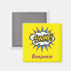 A fun and colorful magnet, this item features the word "Snap!" written in yellow on a white cloud that has a red and blue burst behind it. The background is bright yellow. At the bottom is your name featured in lovely purple font. Order yours today!