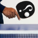 The percontation point (punctus percontativus), or rhetorical question mark, also known as an ironicon was invented by Henry Denham in the 1580s and was used at the end of a rhetorical question; however, its use died out in the 17th century. It was the reverse of an ordinary question mark, so that instead of the main opening pointing back into the sentence, it opened away from it.