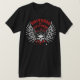 Badass steel skull with straight-razor wings, leather helmet & goggles, "Snitches Get Stitches" in Gothic lettering, and red splatter background. T-shirts & gift swag.