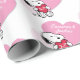 Peanuts Valentine's Day | Check out Snoopy holding onto a red heart, with pink hearts in the background that read: "hugs & kisses". Add names to personalize this wrapping paper for your sweetheart!