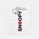 Snoopy relaxes against a rock on top of his name in English and Japanese.