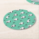 Snoopy Mustaches & Teal Pattern Round Paper Coaster