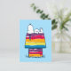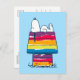 Send colorful greetings with this Peanuts postcard featuring Snoopy in front of his rainbow-colored doghouse. Perfect for sending cheerful messages, celebrating special moments, or simply sharing the vibrant charm of Snoopy, this postcard is a great way to spread positivity and fun.