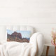 13” x 21” throw pillow with an image of a watercolor painting of a predominant and recognizable red rock formation close to the town of Sedona. At the base of the Crimson Cliffs is the distinguished landmark Snoopy Rock, so named because of its likeness to Snoopy the dog from the Peanuts cartoons. Rust back.