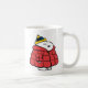 This classic white ceramic coffee mug features the beloved Snoopy character ready for cold weather. The design prominently displays Snoopy wearing a warm, puffy red winter coat and a blue and yellow knit cap. This charming mug is perfect for enjoying hot beverages like coffee, tea, or cocoa during the winter and holiday season, making it an excellent gift or a cozy addition to any Peanuts fan's kitchenware collection.