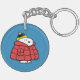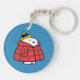 This cheerful, officially licensed Peanuts Snoopy Keychain is a perfect accessory for fans to personalize their gear. The keychain features a durable, round acrylic or plastic charm showcasing a beloved image of Snoopy bundled up in a puffy red winter coat and a yellow-and-blue knit hat, all set against a vibrant sky blue background.