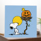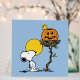 Celebrate Halloween with this charming design featuring Snoopy, the beloved beagle, gazing up at the warm glow of a full autumn moon. Woodstock sits cheerfully atop a playful jack-o'-lantern nestled in his tree-top perch. With classic Peanuts charm, this design captures the magic of the Halloween season, perfect for adding a touch of nostalgia and whimsy to any holiday occasion. Ideal for fans of Snoopy and timeless Halloween fun!