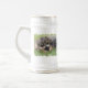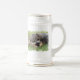 Snoozing miniature schnauzer dog sleeping beer stein.