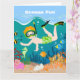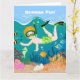This is an illustration that features a vibrant underwater scene with a boy snorkeling close to tropical fish, coral reefs, and other sea life. Every summer day is a party for kids on the beach. The seaside is the place to go and have fun with friends, swimming and diving, maybe celebrating their birthday too! Don't forget the towel, the hat, and the sun protector! You can use this Birthday Greeting Card for a diver but also a swimmer, any kid who is fond of the sea, or a girl that was born in the summertime. You can personalize the interior of this Greeting Card with a special message. Choose the font and the color. It's easy!