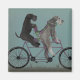 Gray tandem by Fabfunky. Features schnauzers riding a bicycle in a whimsical, steampunk style. | 192047D