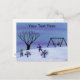 A tiny watercolor and ink evening landscape of children playing on the playground, making snow angels, under the evening stars. Painted for Art-O-Mat.